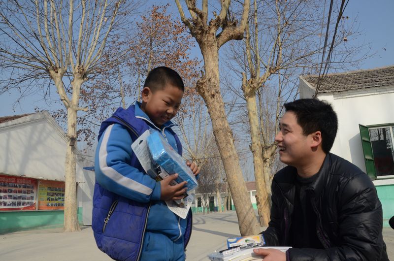 “你看,這是文具,還有籃球、足球一些運(yùn)動(dòng)玩具,都是送給你的……”看到叔叔阿姨們送來(lái)的新書包、新學(xué)習(xí)用品,小允杰很高興。